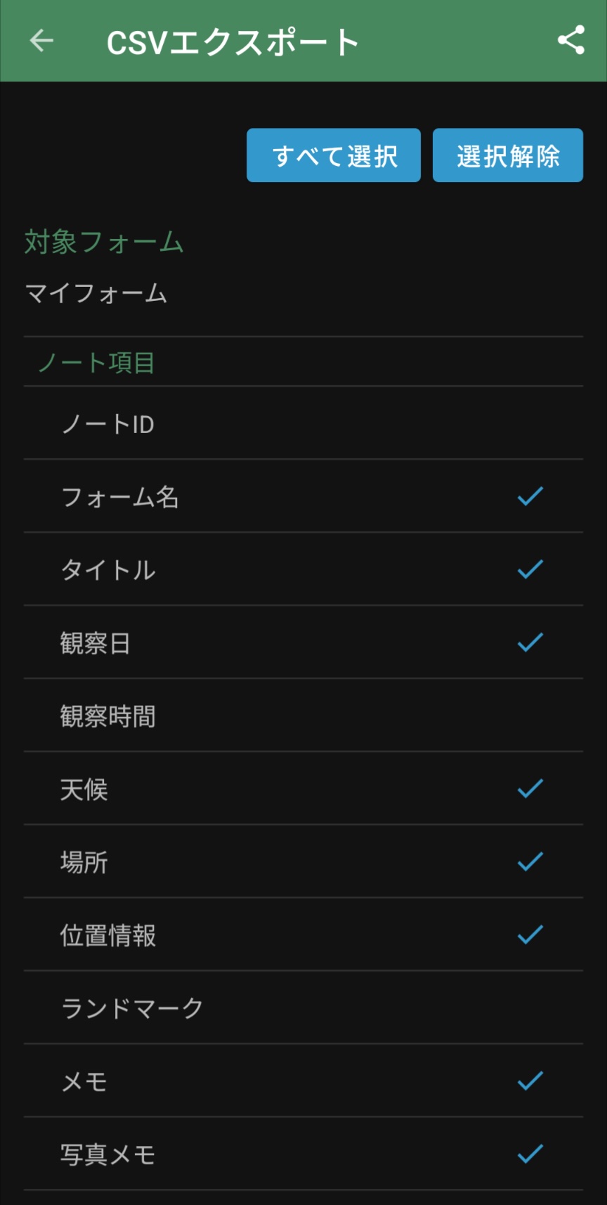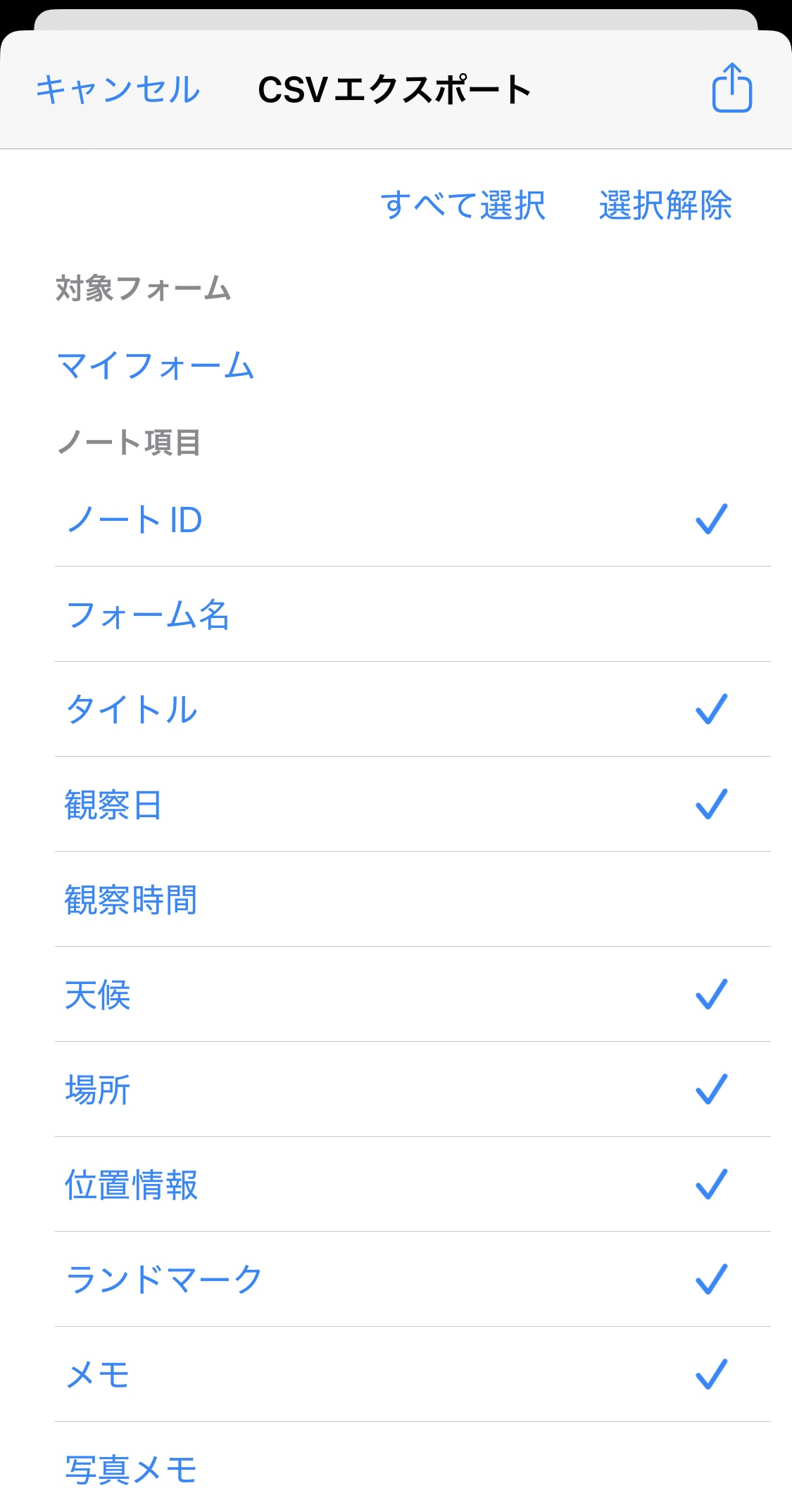 | CSVエクスポートの項目選択 |