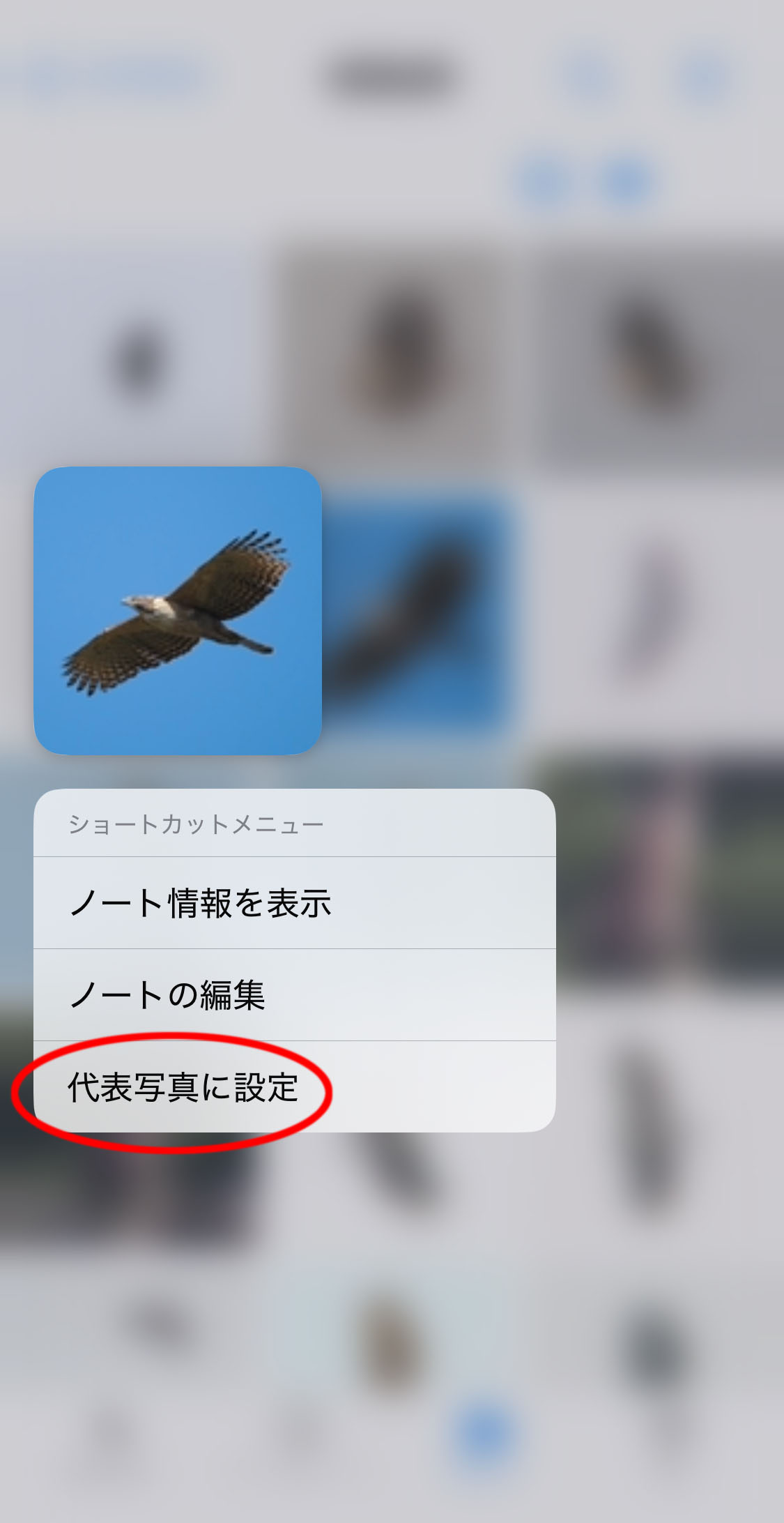| ライフリストの詳細 | 写真アルバムとメモ機能 | 写真アルバムで長押し |