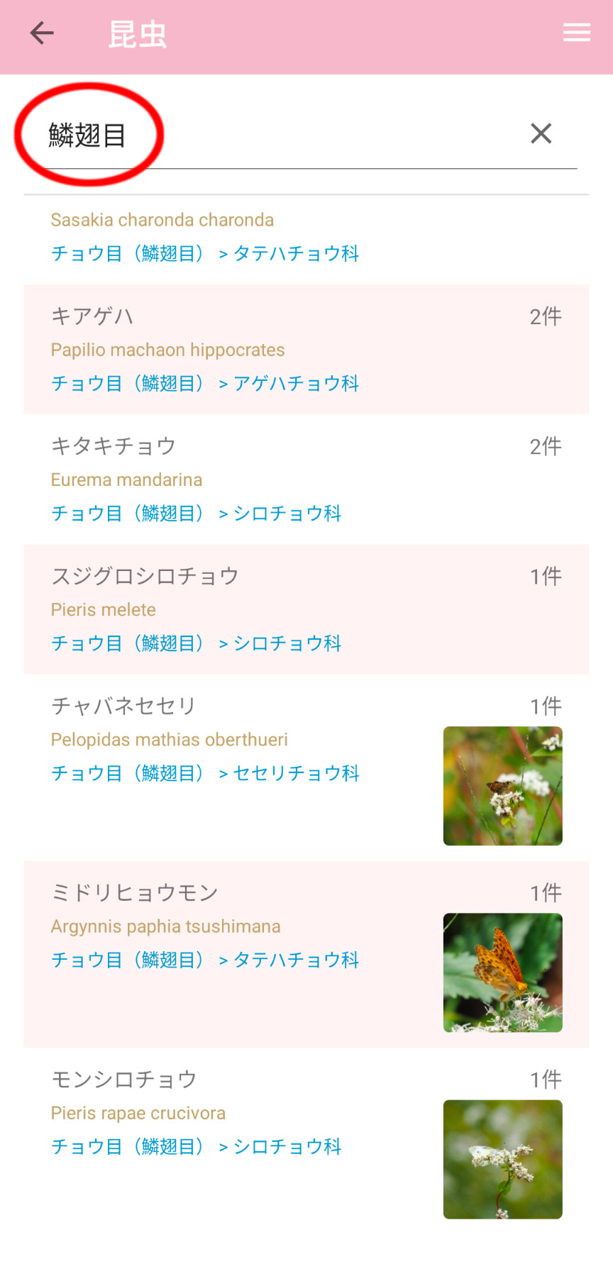 - ノート検索の検索ワードの対象に分類階級を含めました。これにより目・科・属名でも検索可能です。